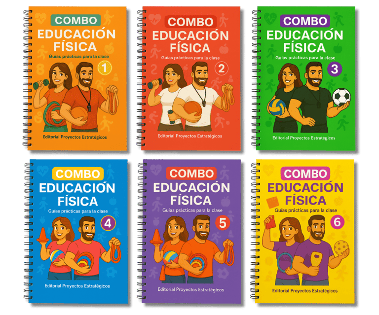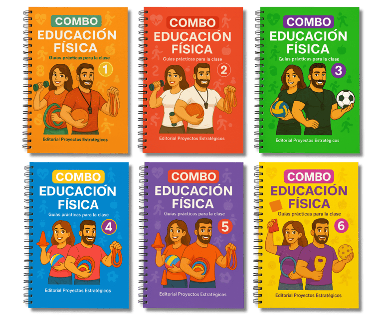📗 1º a 6º grado → Planificaciones anuales, juegos motores, coordinación, fuerza, flexibilidad, resistencia, circuitos avanzados, hábitos saludables, proyectos en grupo + evaluaciones visuales.